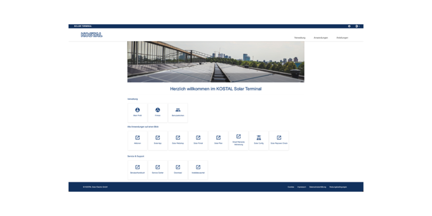 Im ersten Schritt wurde das KOSTAL Solar Terminal entwickelt, ein zentrales Single-Sign-On-Kundenportal (SSO, das den Zugang zu verschiedenen IT-Systemen vereinfacht und die Benutzerverwaltung zentralisiert.