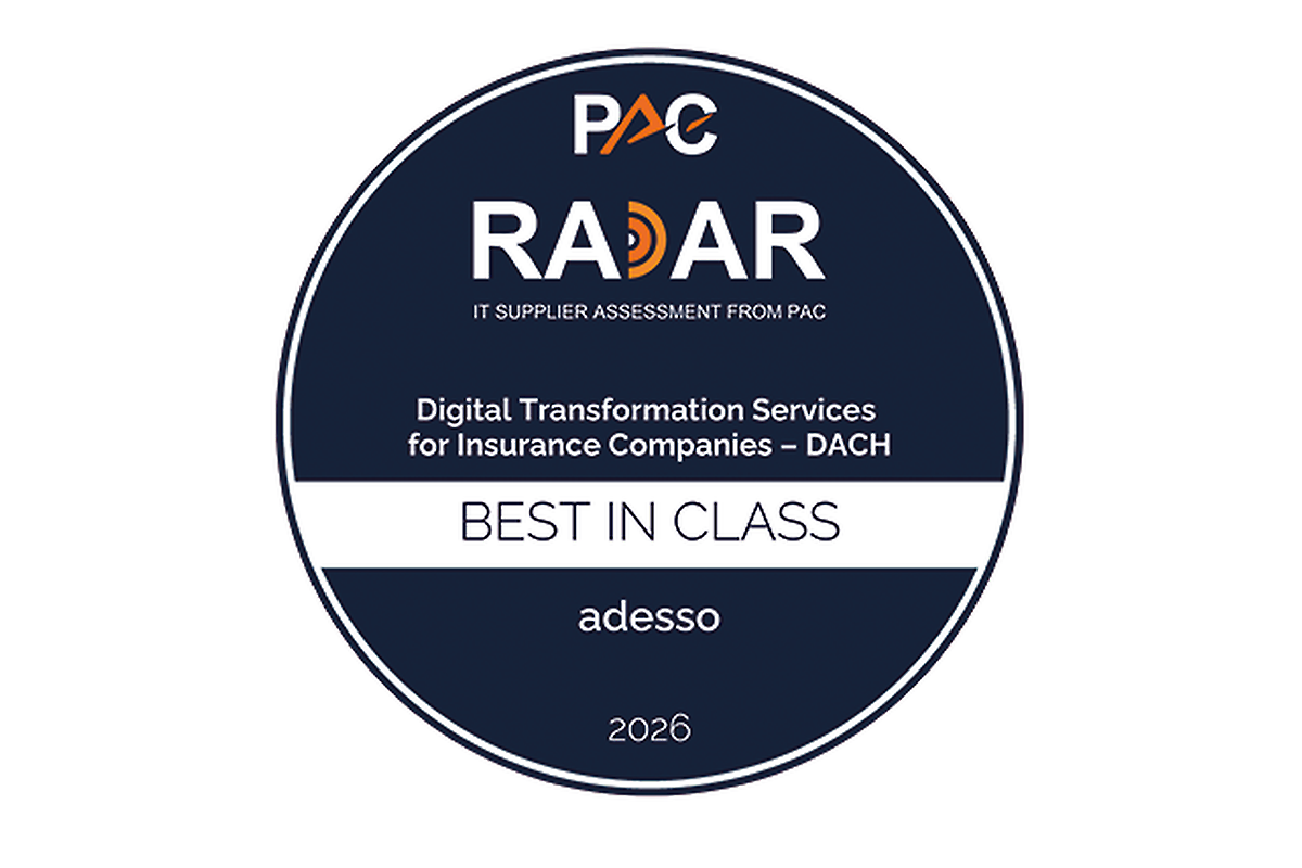 Der Radar analysiert führende IT-Dienstleister im DACH-Raum, die die digitale Transformation der Versicherungsbranche vorantreiben. PAC bewertete ihre Fähigkeiten, Branchenexpertise, moderne Technologien und innovative Lösungen bereitzustellen, die den Versicherern helfen, ihre Abläufe und das Kundenerlebnis zu verbessern – einmal übergreifend und zusätzlich gezielt in einzelnen Segmenten und Sparten. adesso wurde durchgehend als „Best-in-class“-Anbieter eingestuft.