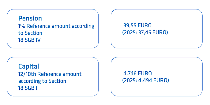 Since 2025, uniform limits have applied in eastern and western Germany for pension and unemployment insurance. However, the reference value relevant for de minimis limits remains different in the east and west.
