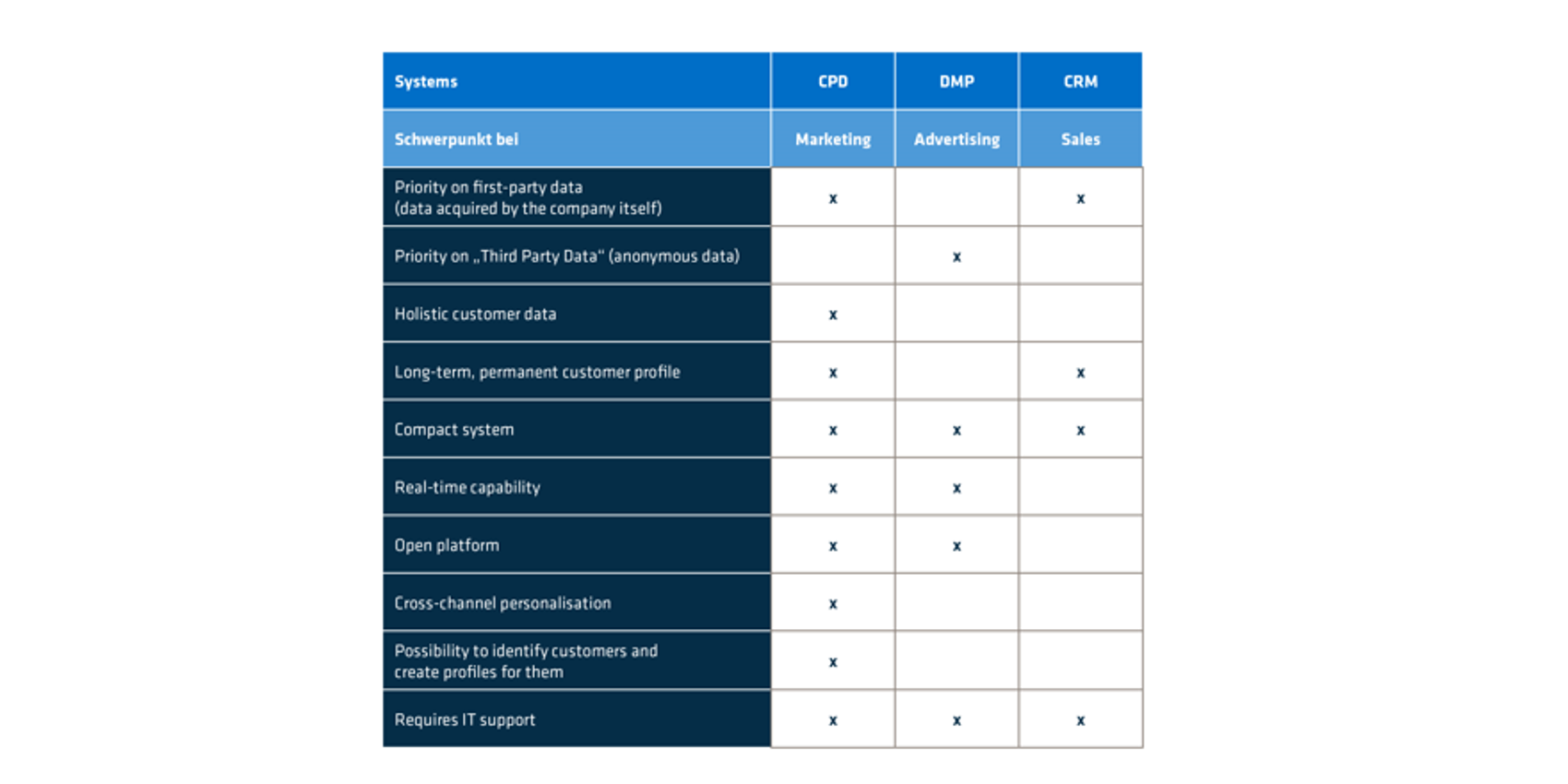 As revealed by the name, CDP is databank software that is used when it’s necessary to holistically and continuously gather customer data from several sources and merge it so harmoniously that it makes it possible to have a holistic view of each customer at any point along the customer journey, online and offline. An important basis for this is that there is a customer – or rather, an identifiable person – who will be enriched by all of the data gathered.