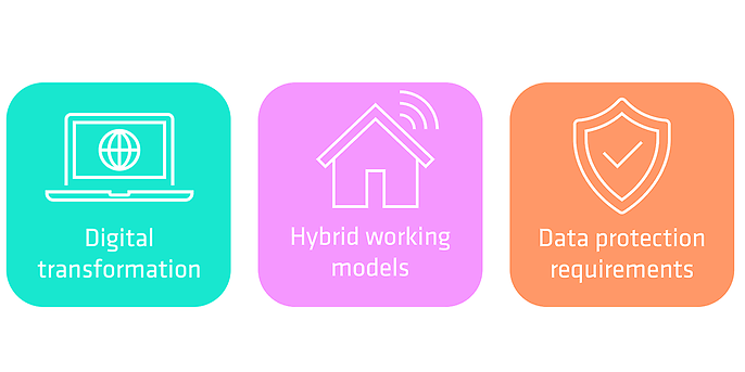 There are many reasons for this: digital transformation is forcing companies to operate faster, more flexibly and in a more networked manner. Employees work on the move, in hybrid or remote modes. Data is no longer stored centrally on the company's own servers, but distributed across SaaS applications, cloud services and collaboration platforms. At the same time, requirements are increasing due to legal provisions such as the General Data Protection Regulation (GDPR), industry-specific compliance regulations and international standards such as ISO 27001 and NIS2.