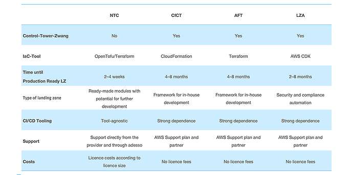 AFT and CfCT are powerful frameworks that enable companies to develop, expand and operate their own landing zones. LZA, on the other hand, is a very powerful solution for deploying complex environments at impressive speed.