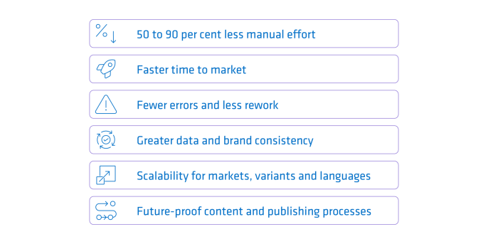 With digital and data-driven publishing, you can combine product data, assets and layout processes to produce print and channel media efficiently and automatically.